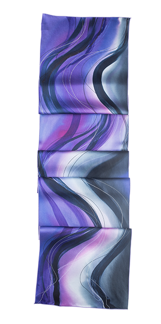 Hand-painted on 100% silk charmeuse, giving a luxuriously smooth, silky feel to this scarf.